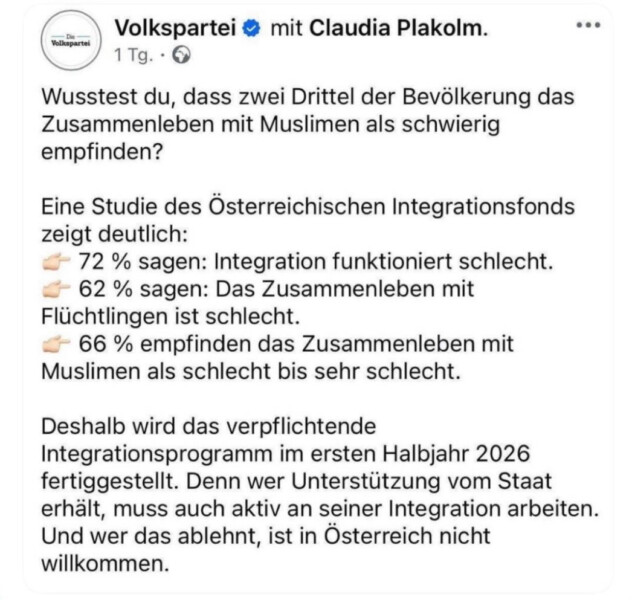 Das ist natürlich ein durchsichtiger politischer Trick. Marterbauer will linke Stimmen in der Wiener Meinungsblase hinter sich sammeln – es werden ihm Ambitionen auf den SPÖ-Chefposten unterstellt – und er selektiert daher taktisch die einzige wirklich positiv belegte muslimische Gruppe in Österreich für sein Argument. Die Österreicher waren nämlich gegenüber den im Krieg verfolgten Bosniern in den 1990ern großzügig und haben viele nach den Balkankriegen aufgenommen. Das ändert aber rein gar nichts an der generell schlechten Integration vieler anderer Muslime in der österreichischen Wahrnehmung. Die relevanten „muslimischen Problemfälle“ der 2020er Jahre sind meist auf illegale Migranten zurückzuführen, die unzählige sichere Herkunftsländer durchqueert haben und sich dann im österreichischen Sozialsystem bequem gemacht haben. Sie alle eint aber ihr Glaube, der ein klares Integrations- und Assimilationshindernis in Österreich darstellt.