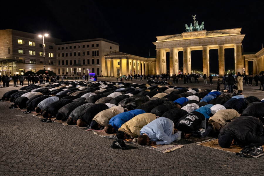 Besonders schmerzhaft ist diese Entwicklung an Orten zu beobachten, die die Identität und die Freiheit des Westens verkörpern. Wenn hunderte islamische Männer vor dem Brandenburger Tor – dem Mahnmal der deutschen Einheit und Freiheit – in Reih und Glied niederknien, wird die Architektur der Aufklärung buchstäblich in den Schatten gestellt. Es ist ein visueller Bruch, der dem Betrachter signalisiert: „Eure Symbole sind zweitrangig. Unser islamisches Gesetz steht über euren Symbolen.“ Der islamische Gebetsruf hallt über den ikonischen deutschen Platz, wo einst die Mauer fiel – und kein Offizieller hat das natürlich genehmigt oder gestattet. Die Verbindung von islamistisch-politischer Demonstration mit dem islamischen Gebet ist natürlich alles andere als ein Zufall.