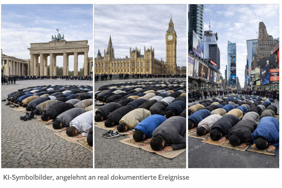 In einer Zeit, in der der Westen sich zunehmend selbst in Frage stellt und seine eigenen Wurzeln verleugnet, rollen Muslime ihre Gebetsmatten aus – und zwar nicht in der Abgeschiedenheit der Moschee, sondern demonstrativ mitten auf dem New Yorker Times Square oder direkt vor dem Brandenburger Tor in Berlin. Was von wohlmeinenden Beobachtern als fromme Andacht verklärt wird, ist in Wahrheit eine kalkulierte islamische Machtdemonstration: Ein ritueller Besitzanspruch auf den öffentlichen Raum, der uns allen gehört, oder besser: gehörte. Aus einer realistischen, islamkritischen Perspektive ist dies kein Zufall, sondern ein strategisches Signal. Es markiert das Ende einer Tradition der Zurückhaltung und setzt an ihre Stelle eine unmissverständliche Botschaft: „Das hier ist jetzt unser Territorium.“ Lassen Sie uns diese Absurdität unserer Zeit und die Folgen einer grenzenlosen, faktisch suizidalen Islamtoleranz genauer betrachten, bevor der Ruf des Muezzins endgültig zur neuen Nationalhymne avanciert.