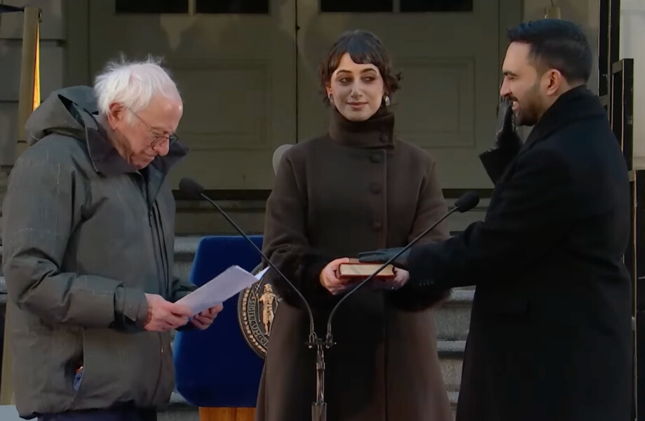 Zohran Mamdani bei seiner Angelobung mit seiner Ehefrau, Quelle: NYC Mayor’s Office